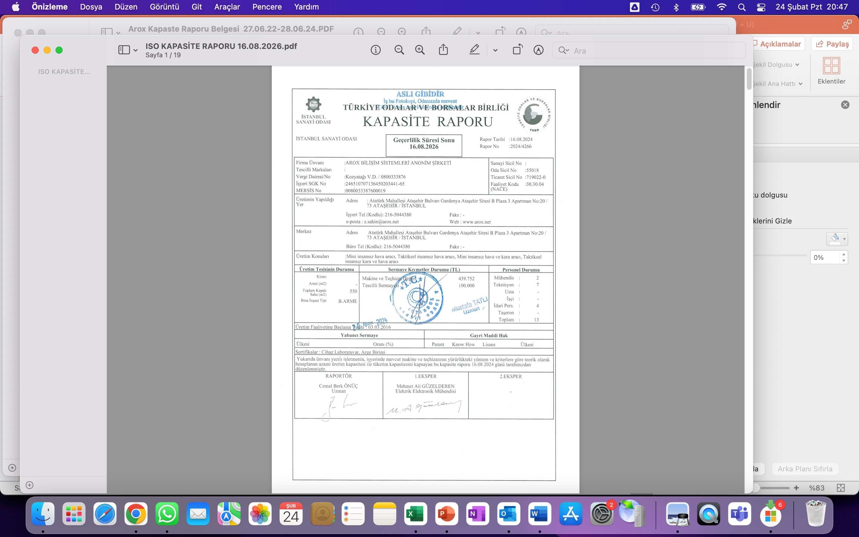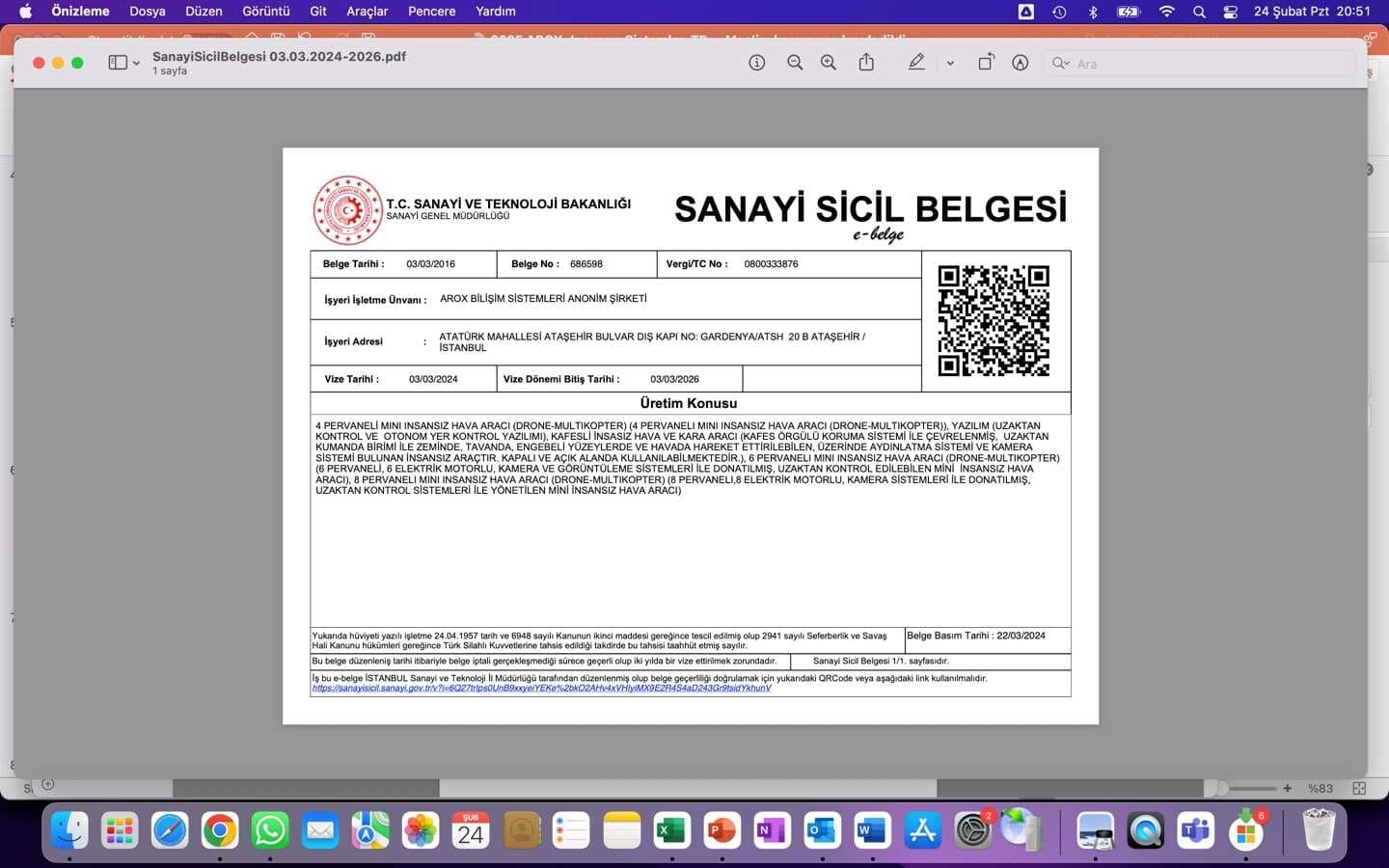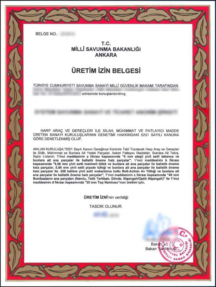 CERTIFICATES FOR INDUSTRIAL PRODUCTION