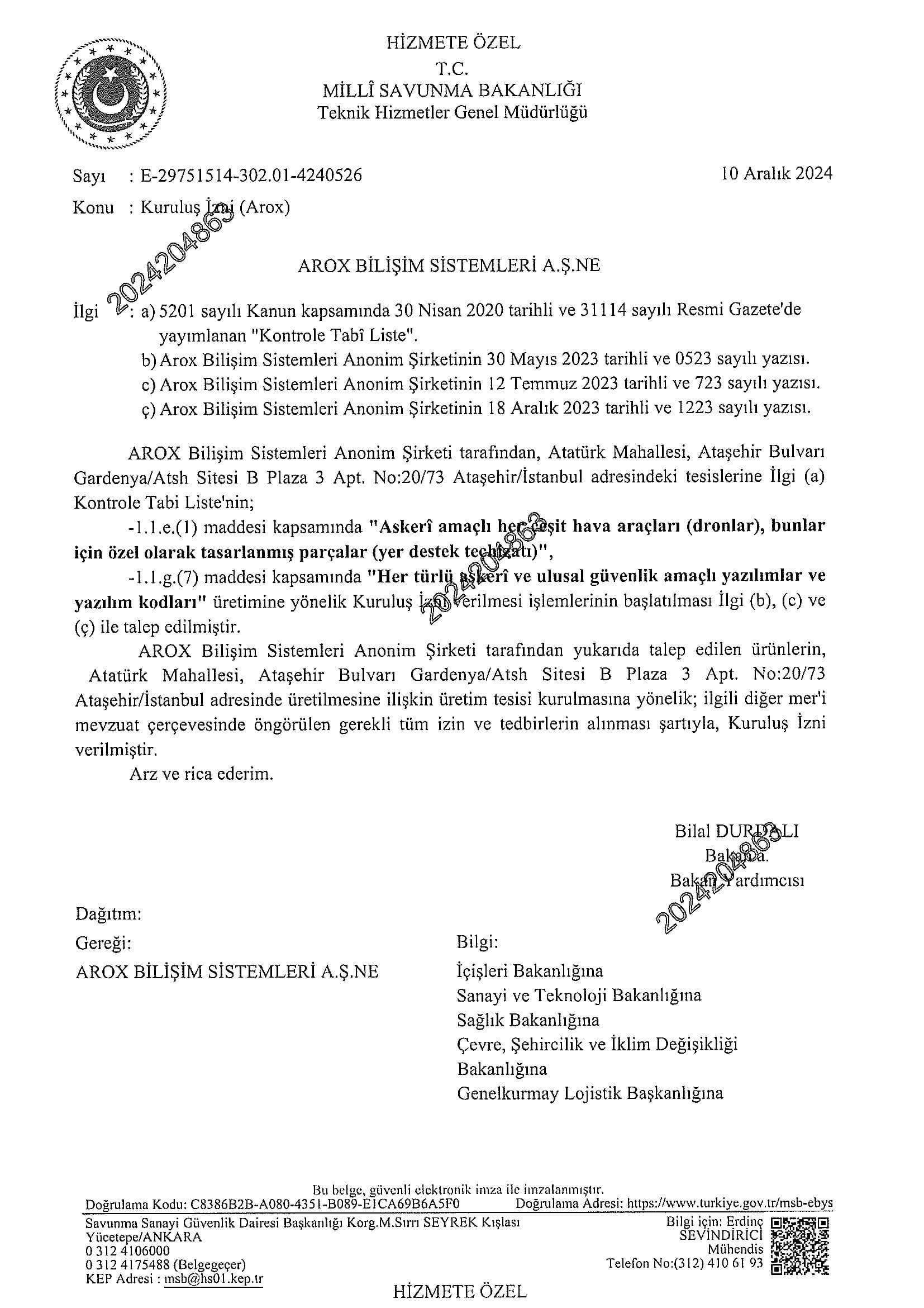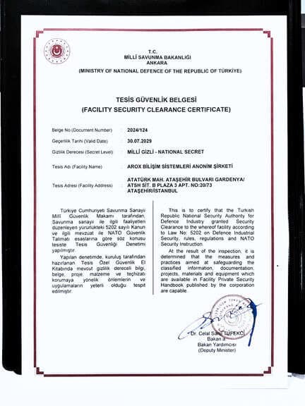 CERTIFICATES FOR DEFENSE INDUSTRY